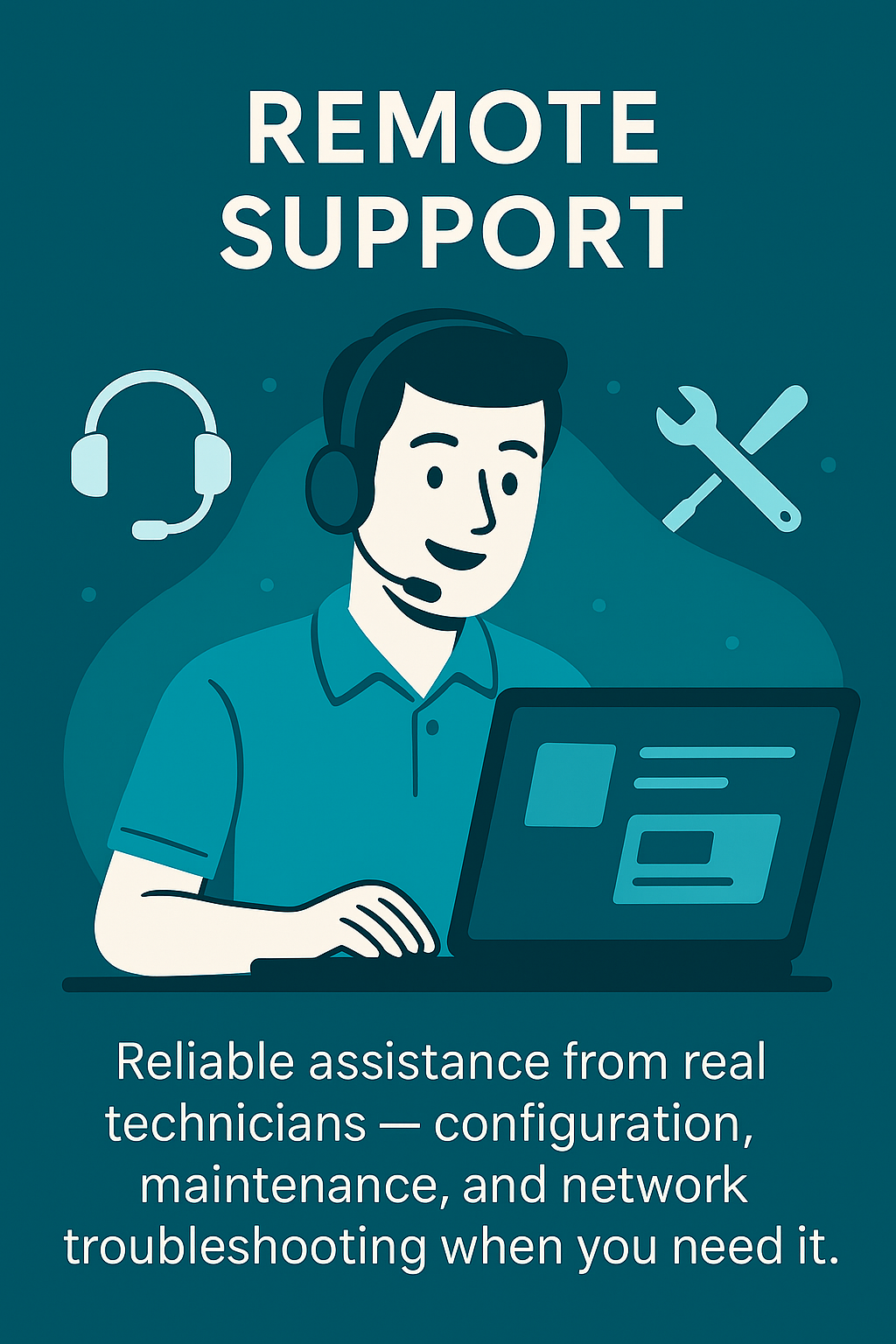 Our U.S.-based technicians provide remote troubleshooting, setup, and maintenance.